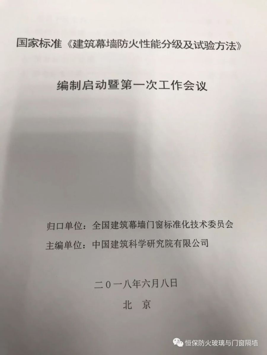 全国建筑幕墙门窗标准化技术委员会秘书处刘会涛高级工程师代表标委员会宣读编制组名单,标准编制启动会圆满结束。鹤山恒保陈沃林总经理也应邀参加了这次的国家标准编制。