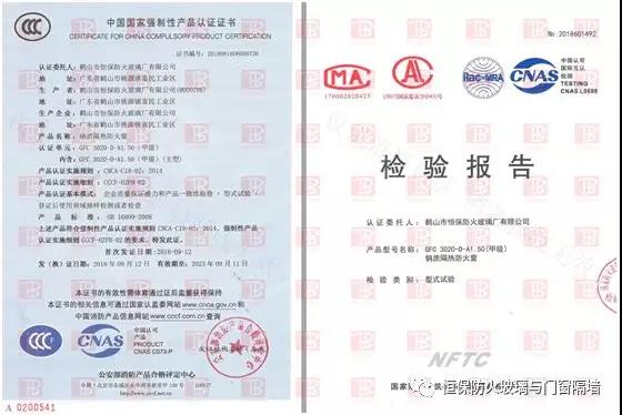 鹤山市恒保防火玻璃厂有限公司经过多年努力,终于解决这一行业难题:3000mmX2000mm超大尺寸版面,GFC 3020-D-A1.50(甲级)钢质隔热防火窗于2018年6月29日成功通过国家防火建筑材质量监督检验中心型式试验,取得检验报告,并于2018年09月11日获得国家强制性CCC认证证书(证书号2018081806008738)。整窗都能满足防火完整性和防火隔热性1.5小时的要求,既符合建筑设计防火规范的要求,又具有窗的通透性,美观实用。完美解决了地铁高铁消防控制室超大甲级防火观察窗合法化的问题!