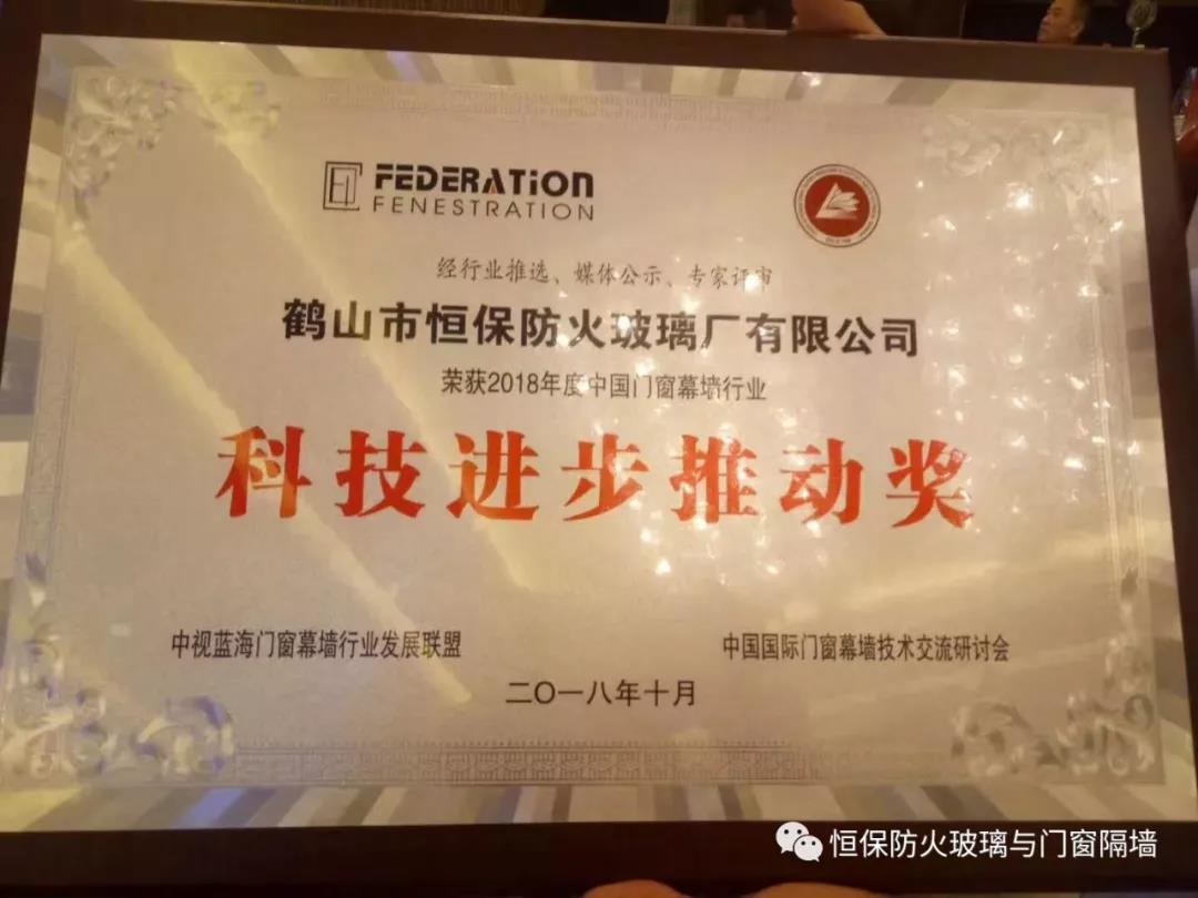 鹤山恒保公司在此次交流研讨会中,获大会专家评审并颁发2018年度中国门窗幕墙行业“科技进步推动奖”。