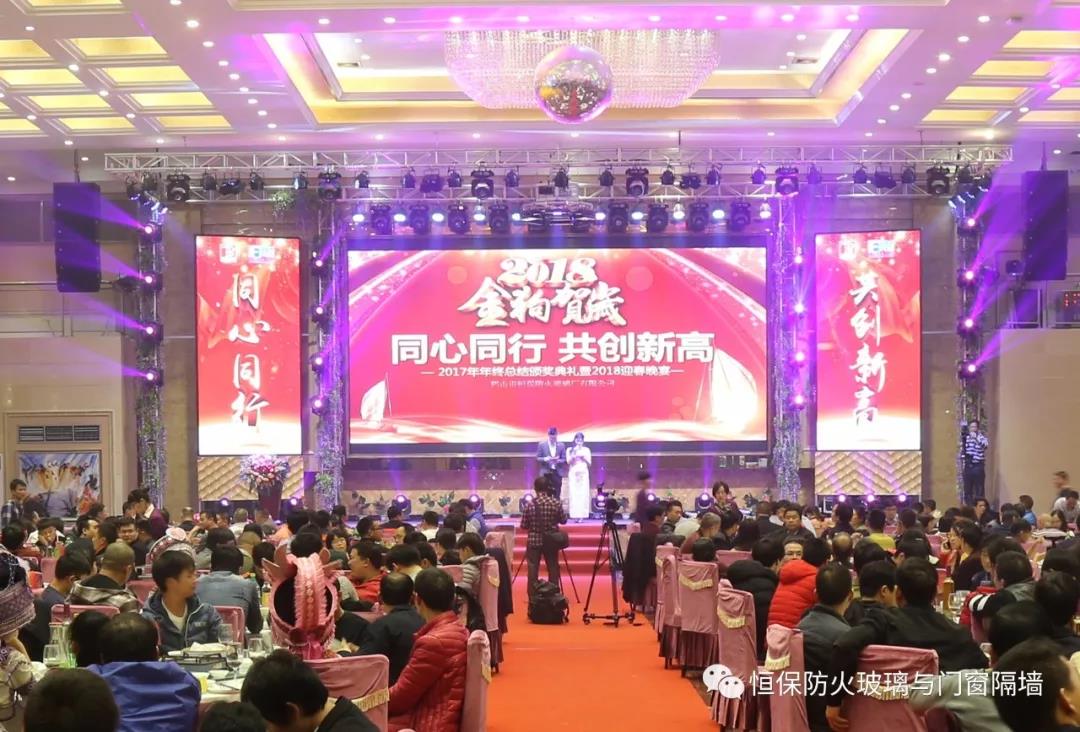 【同心同行,共创新高!】鹤山市恒保防火玻璃厂有限公司2017年年终总结颁奖典礼暨 2018年迎春晚会,在陈总携同着高管团队领唱《相亲相爱一家人》的歌声中,画上了完美的句号。