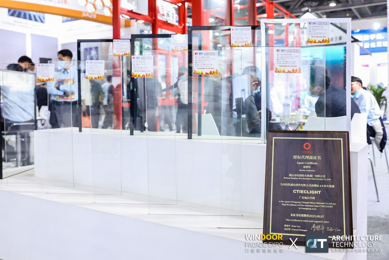 在团队的努力下,恒保公司展位人气一直不减,会客区虚无坐席。众多客户经过现场咨询了解之后,更深层次了解并认可了恒保防火玻璃,并表达了热烈的合作意向。