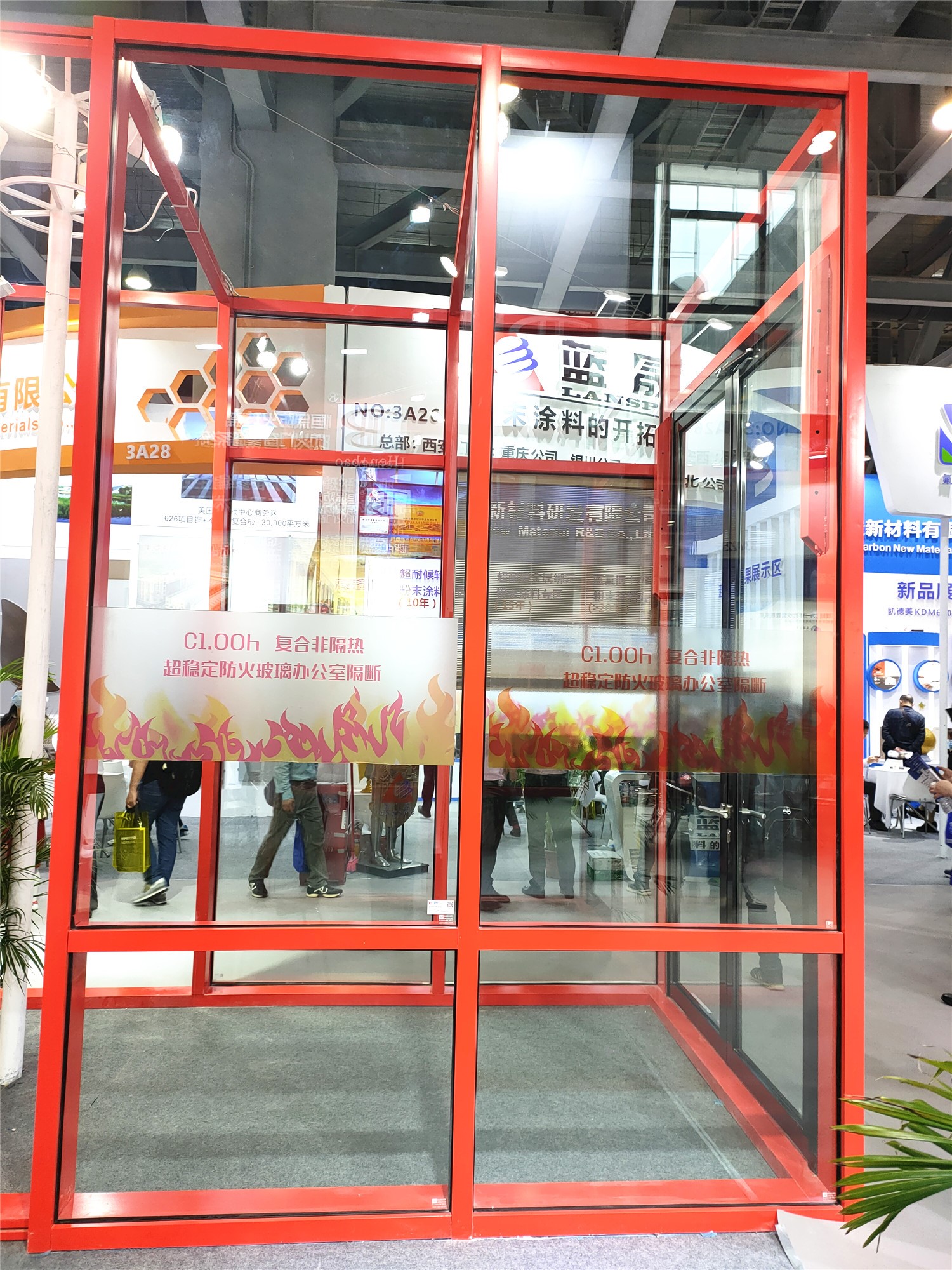 现场还展示了无缝拼接的防火玻璃,但陈总坦言,虽然无缝拼接申请了国家专利,但那不是恒保主推的产品,因为有框的更安全一些,并建议客户尽可能选用有框的。